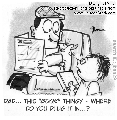 Por el contrario, como se puede ver en la caricatura, las generaciones más jóvenes, hoy en día, ya crecen con esta tecnología y probablemente representen un gran potencial para el mercado futuro de eBooks.